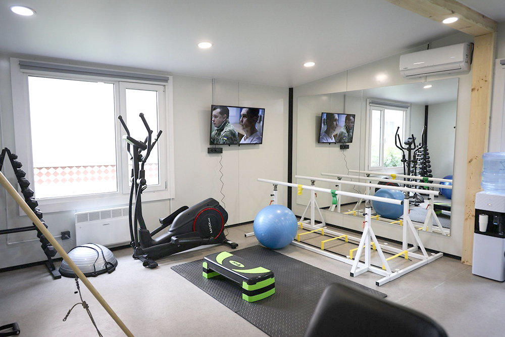 Це один із найбільших мобільних модулів в Україні, його площа становить 116 квадратних метрів. Простір, де щодня працюватиме мультидисциплінарна команда фахівців: лікарі фізичної та реабілітаційної медицини, фізичні терапевти, ерготерапевти, логопеди, психологи, масажисти, кейс-менеджери. Усі вони пройшли навчання і мають компетенції для роботи з ветеранами та людьми з різними реабілітаційними запитами.