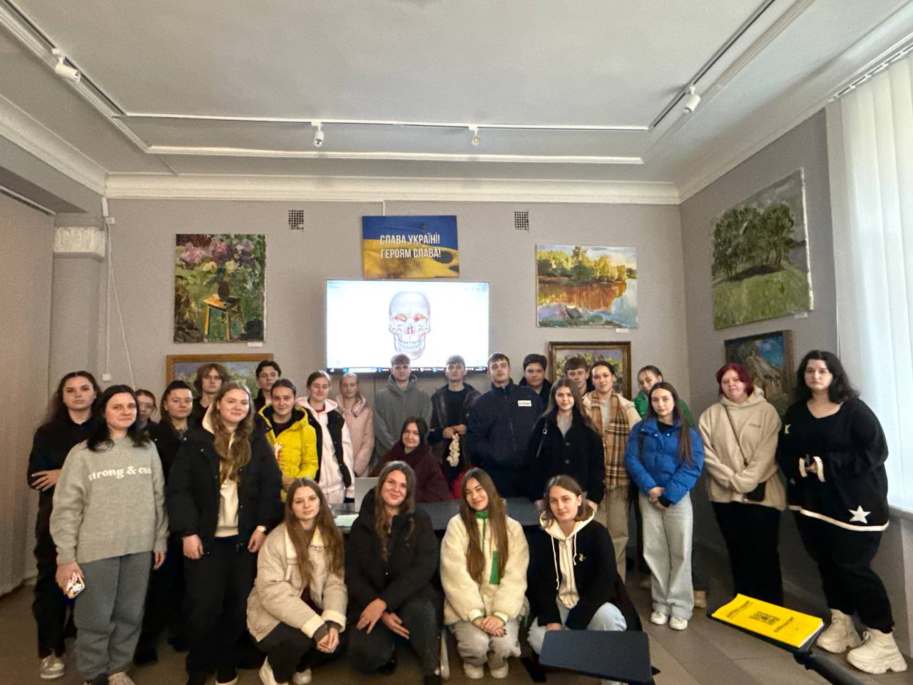 До Всесвітнього дня анатомії в університеті відбулося відкрите заняття з дисципліни «Анатомія та фізіологія людини» для здобувачів 1 курсу спеціальності І7 «Фізична терапія». Під час заняття студенти знайомилися з будовою черепа — складною архітектурою кісток, що захищає найцінніше — мозок. Доцент кафедри медичної реабілітації, валеології та оздоровчих технологій в спорті Прибитько Ірина Юріївна демонструвала анатомічні експонати, ділилася цікавими фактами, а студенти активно ставили запитання та обговорювали особливості черепа людини. Таке навчання, особливо в умовах нестабільності, формує не лише професіоналізм, а й витримку та стійкість характеру.