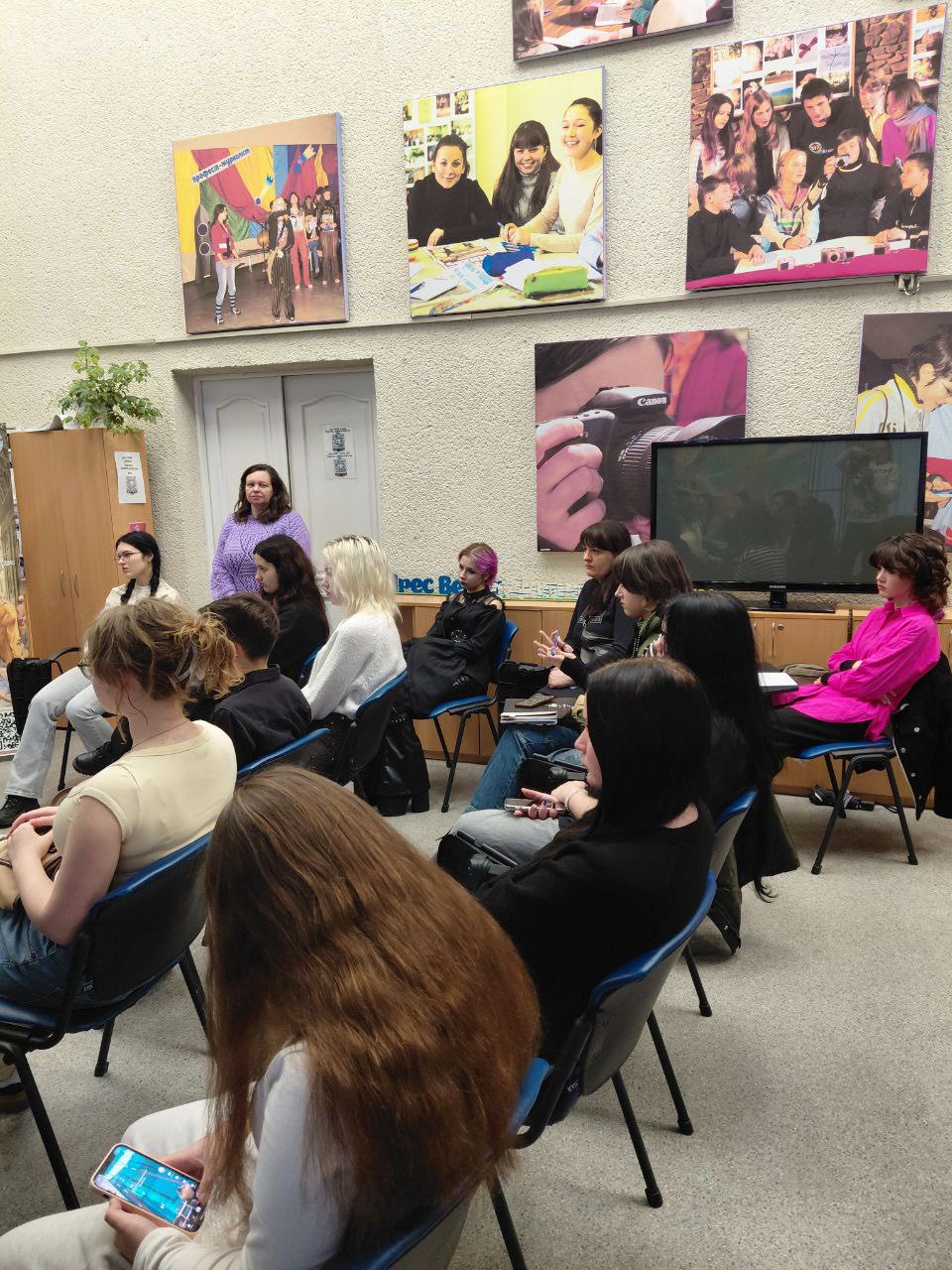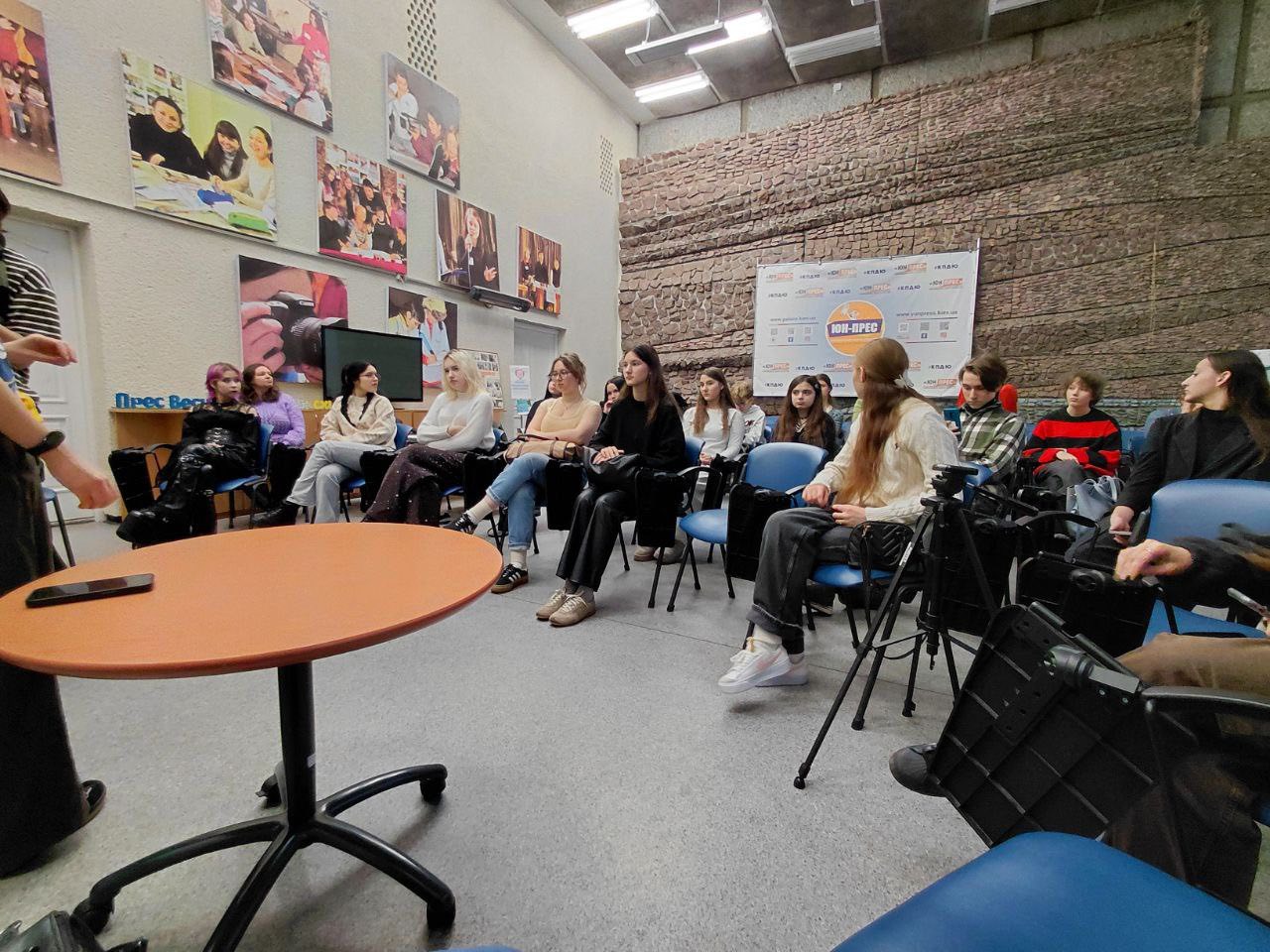 Спікерка активно залучала студентів до практичних вправ, що моделювали реальні умови роботи. Протягом заходу одна зі студенток у форматі інтерв’ювання ставила запитання, готуючись до портретного матеріалу та відпрацьовуючи техніку глибинної розмови. Частина групи зімітувала натовп, відтворивши атмосферу подій січня 2014 року, а інша студентка в цей час підготувала й проводила імпровізоване «пряме включення». Так учасники змогли побачити, як журналіст працює у змінних і напружених умовах.