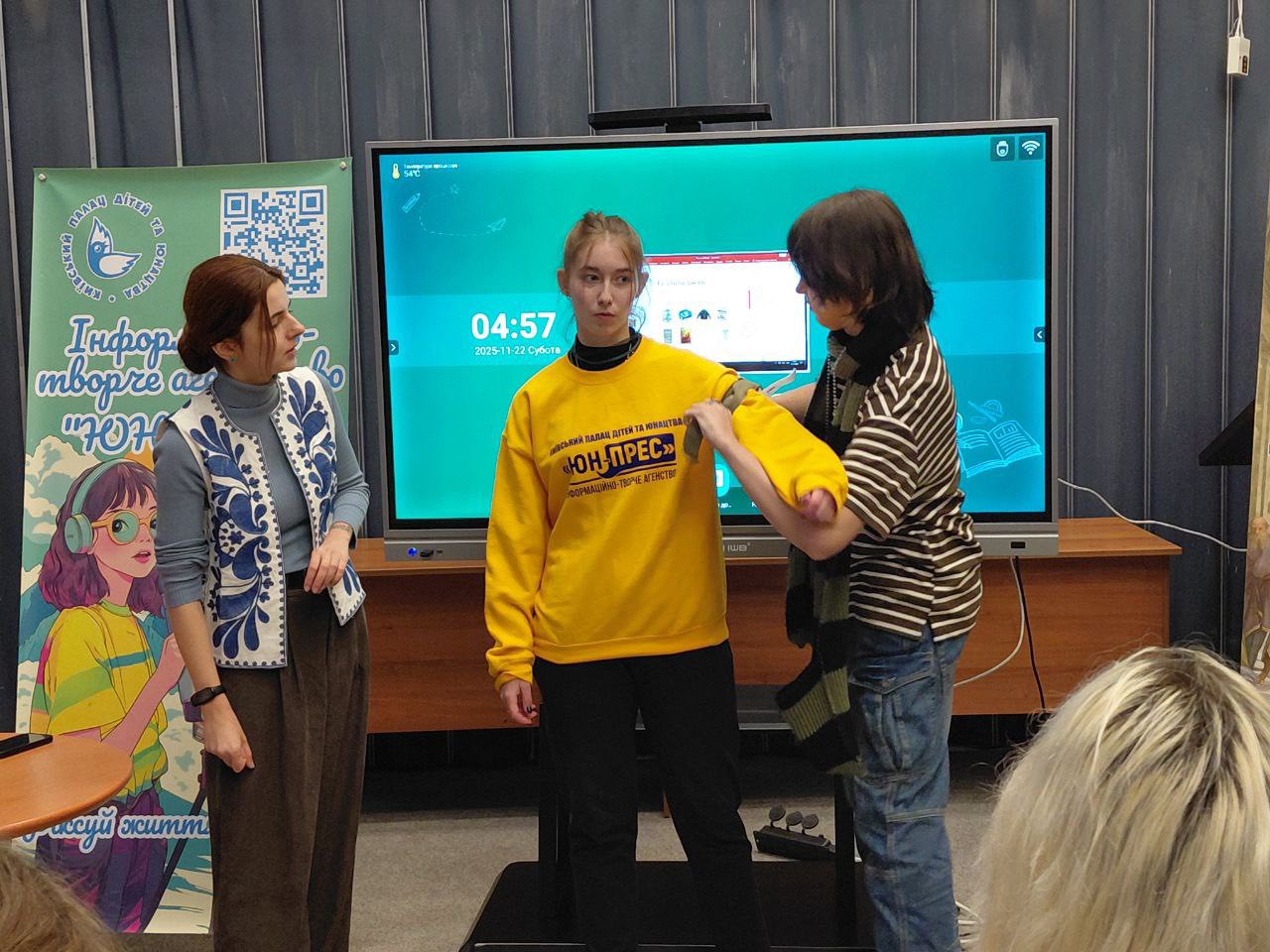 On October 30, 2025, a concert dedicated to the Day of Defenders of Ukraine was held at the Kyiv Palace of Children and Youth as part of the national holiday celebrated annually on October 1, the Day of the Intercession of the Holy Virgin. When we arrived at the venue with our colleagues, we were immediately greeted by Nadiya Oleksiivna, who represented YunPress. She led us to the lobby, where an ensemble from the Palace of Children and Youth was already waiting for us, captivating everyone present with their music.