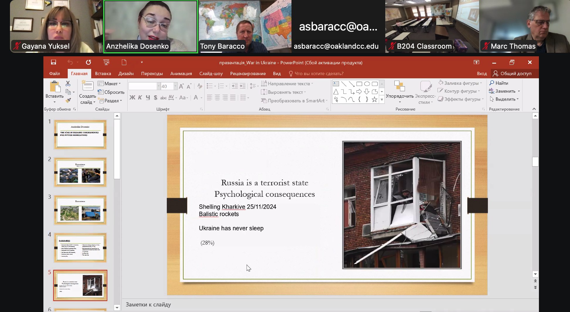 25 лютого відбулася традиційна зустріч у межах співпраці між Інституту філології та журналістики Таврійського національного університета імені В. І. Вернадського та Oakland Community College (Детройт, США). Цього року захід було проведено у форматі панельної дискусії під назвою “Ukraine at War: Perspectives from Ukraine and the USA”, та був присвячений 12-тим роковинам війні рф та 4-тим роковинам повномасштабного вторгення рф в Україну.