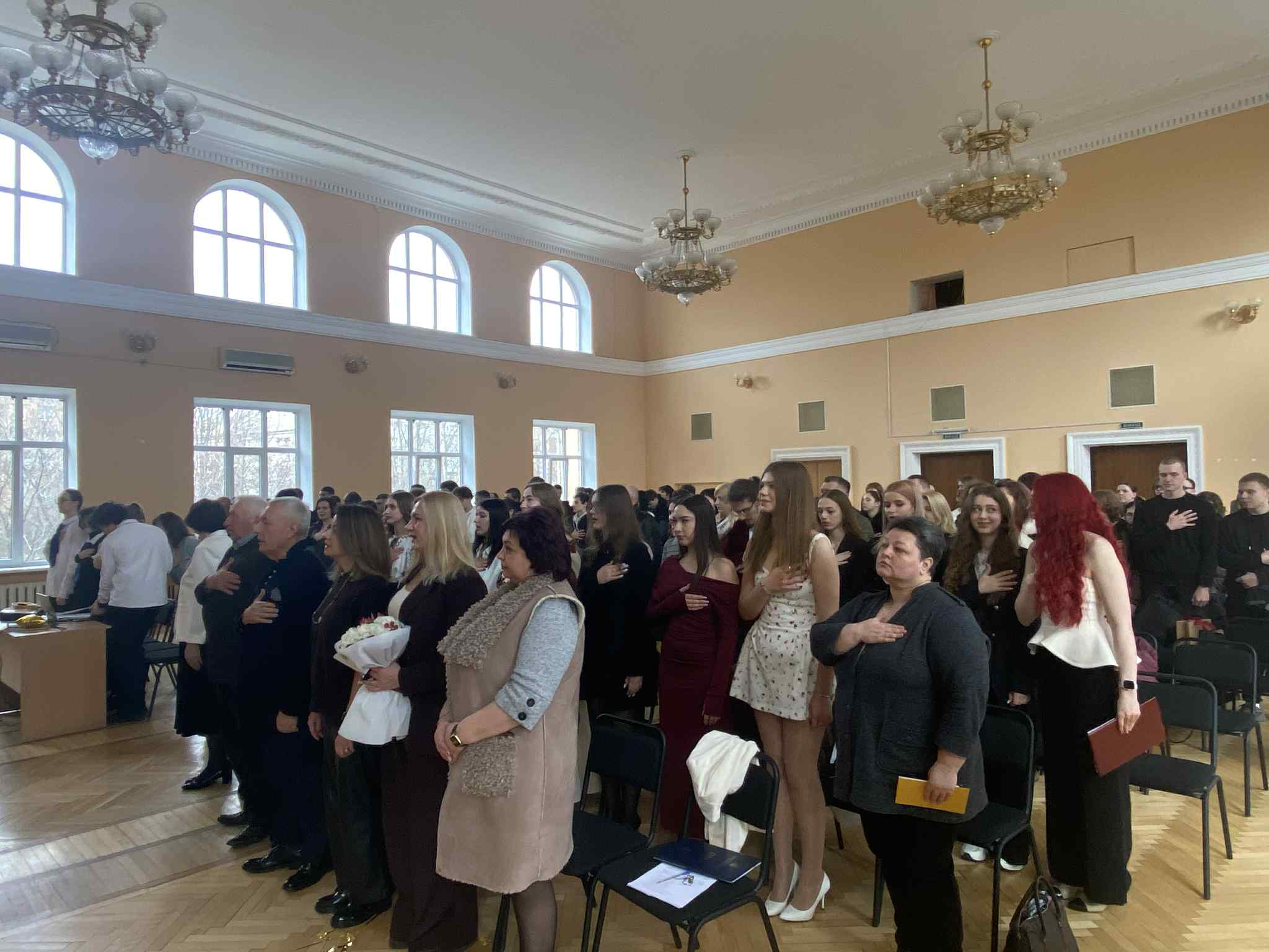 Урочистості розпочалися виконанням Державного Гімну України та хвилиною мовчання — на знак вшанування пам’яті тих, кого вже немає поруч. Війна залишила свій слід у долях студентів, викладачів і випускників, і цей день став не лише святом, а й моментом глибокої пам’яті та єдності.