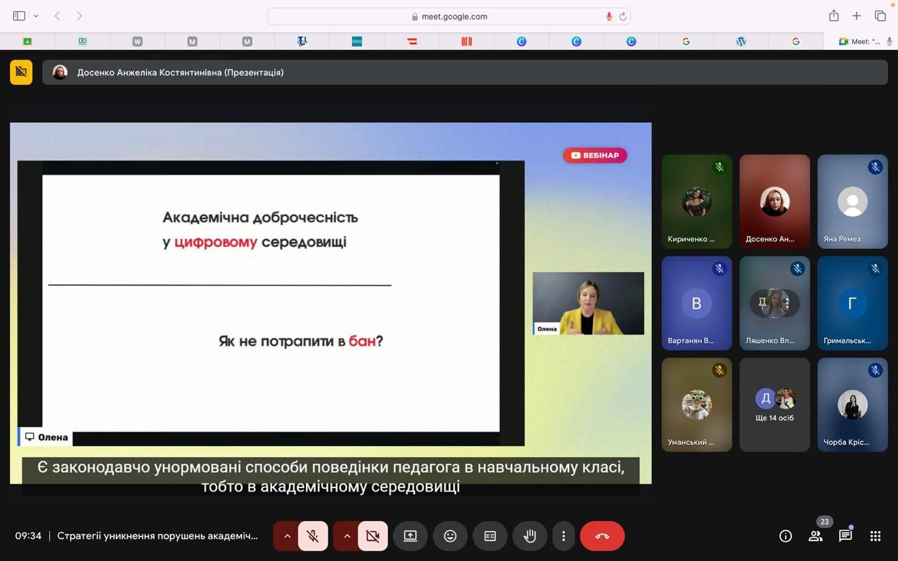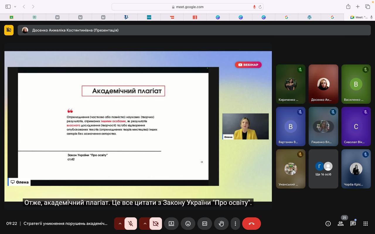 16 жовтня тижня академічної доброчесності ФіЖ Таврійського став днем перегляду вебінару “Стратегії уникнень порушень академічної доброчесності в онлайн просторі ” від Олени Давидової ,керівниці напряму бібліотеки на ресурсі “Всеосвіта”.