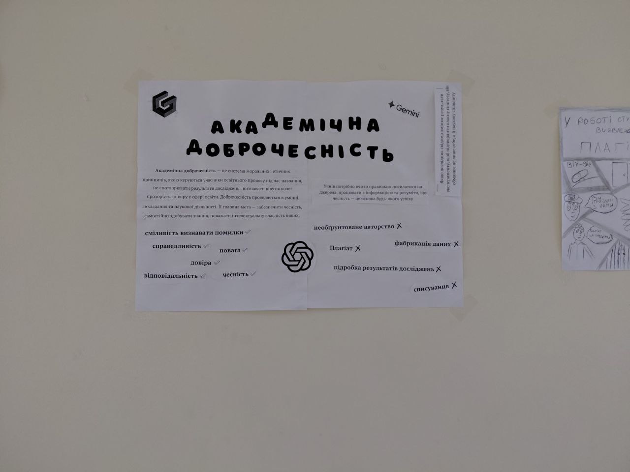 До перегляду долучились викладачі та студенти різних спеціальностей. Завершальним став конкурс стінівок для студентів 1 та 2 курсів. Тепер поверх прикрашений чудовими роботами здобувачів , а для інших є нагадування – ми про доброчесність знаємо багато!