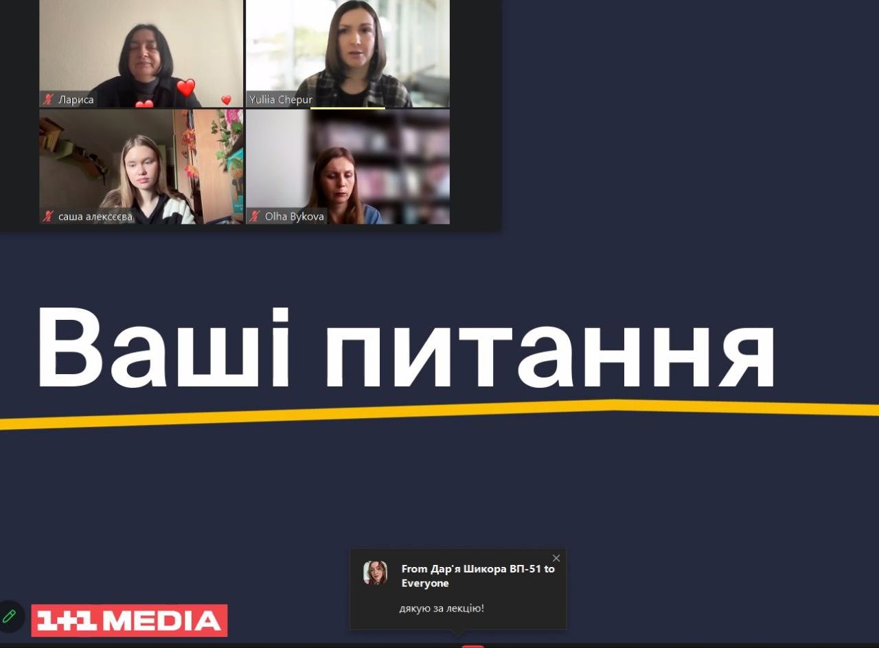 Спікерка заходу – Юлія Чепур, менеджерка з навчання персоналу, керівниця програми стажування «Ближче до ТБ» в 1+1 media.