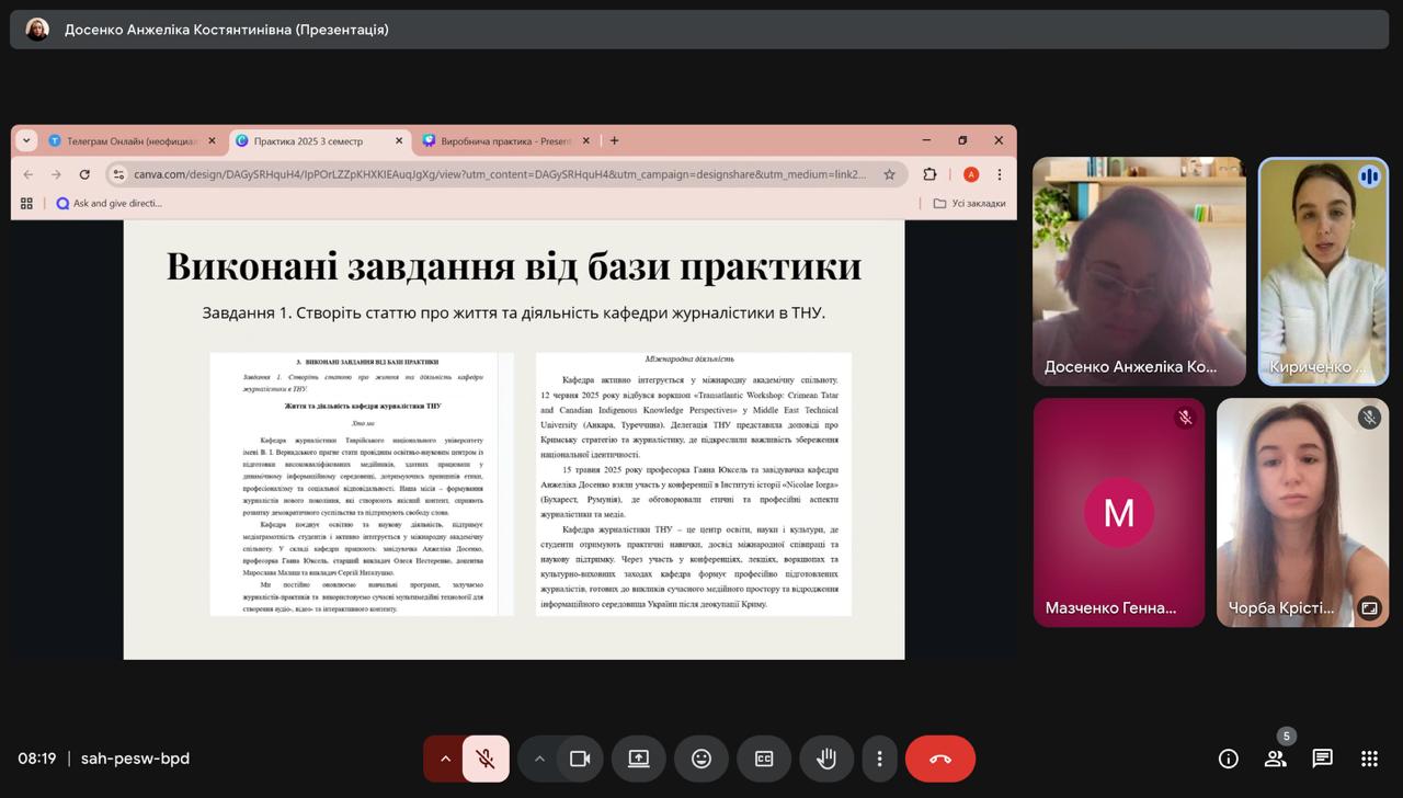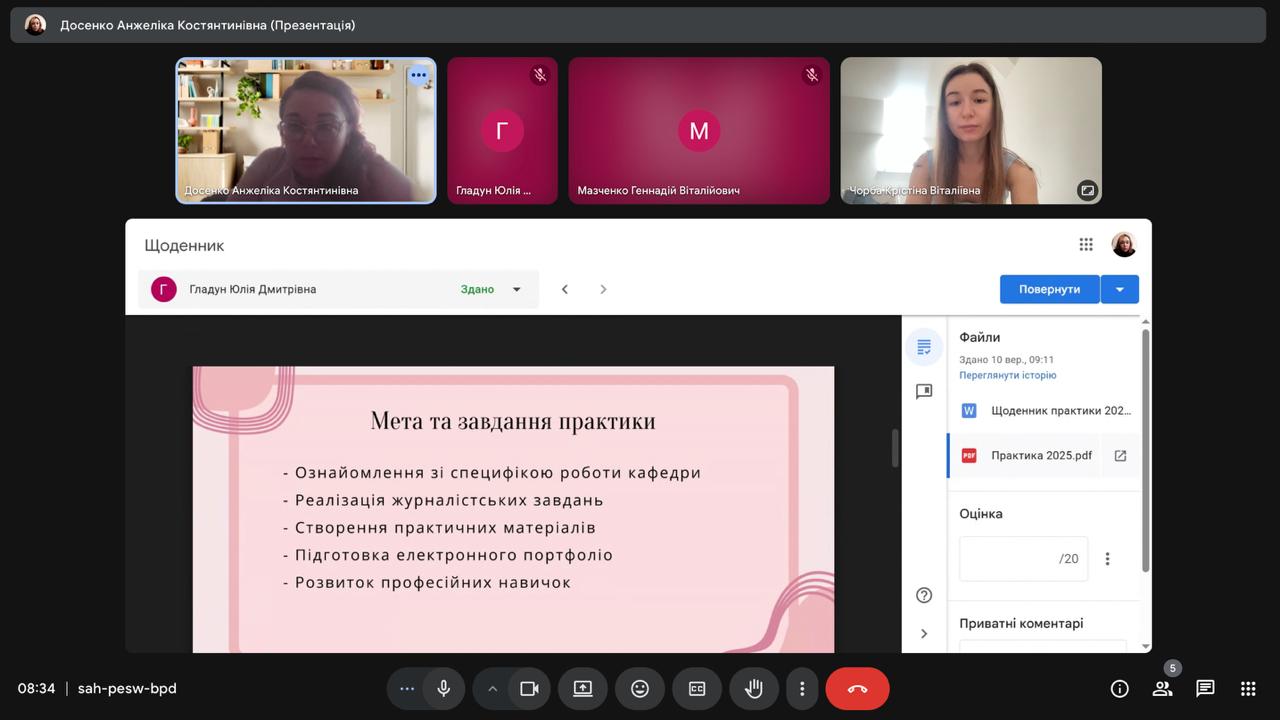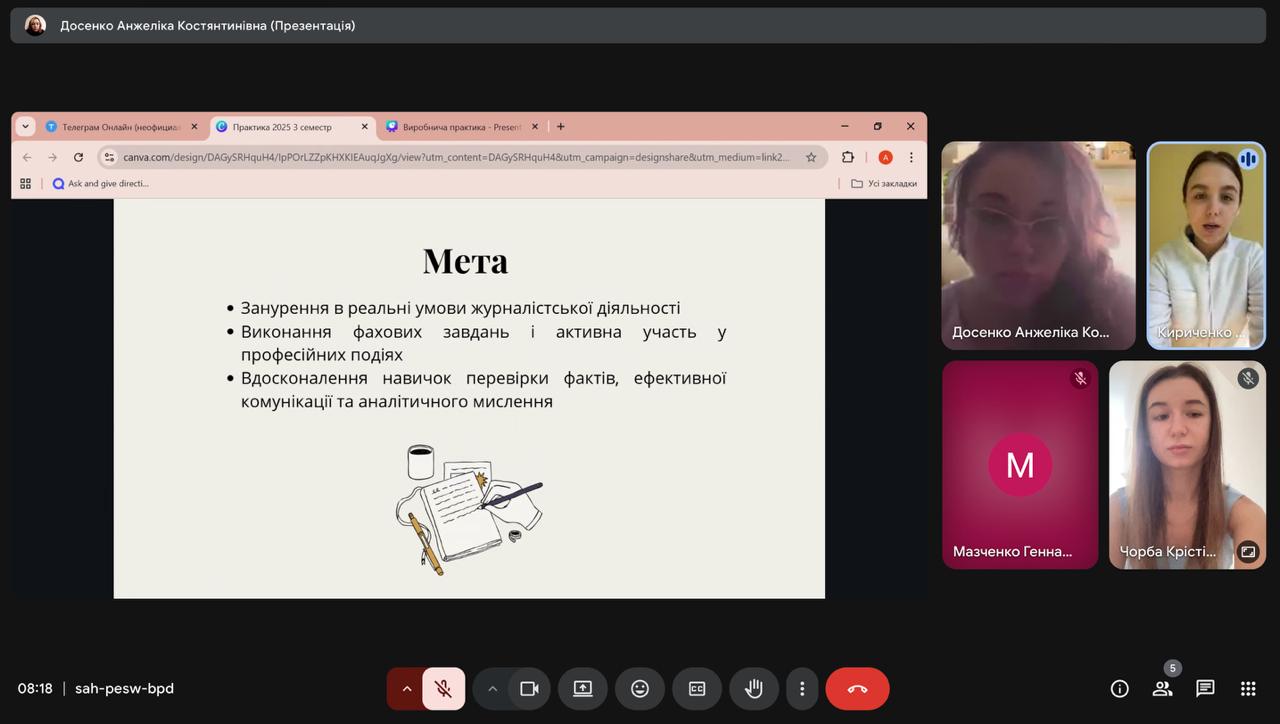 На кафедрі журналістики відбувся захист виробничої практики студентів 3 курсу, під час якого майбутні журналісти представили результати своєї роботи та поділилися враженнями про здобутий досвід.