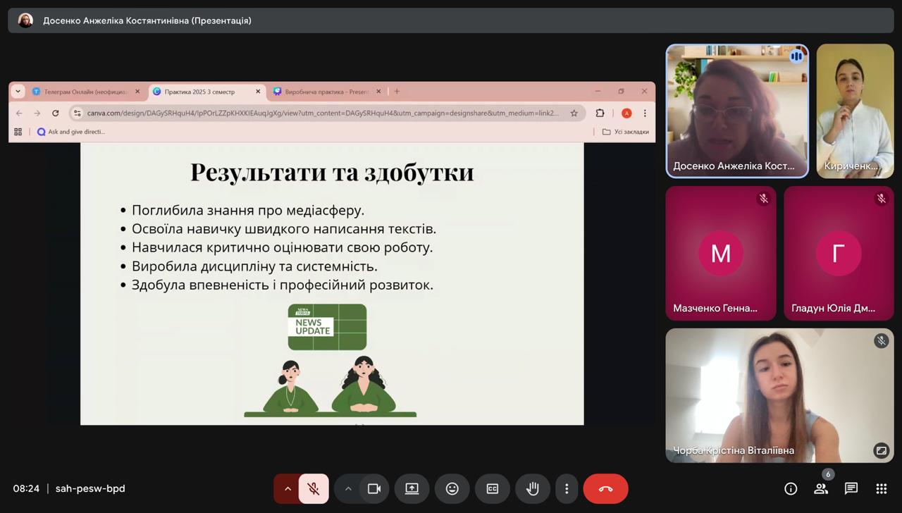 Захист виробничої практики став не лише завершальним етапом навчального блоку, а й важливою подією, яка підтвердила професійне зростання студентів і їхню готовність до подальшого розвитку у сфері журналістики.