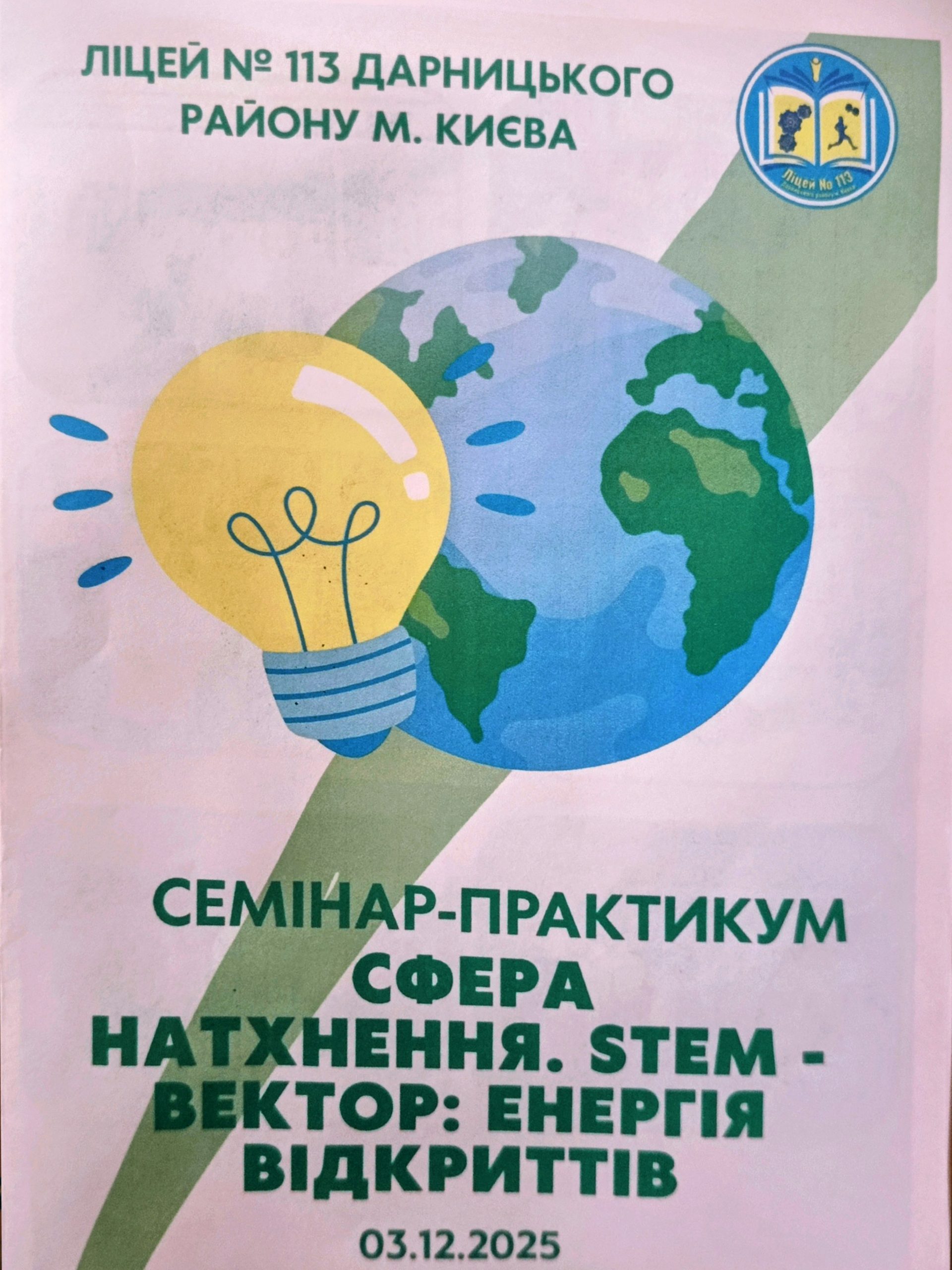 3 грудня 2025 року відбувся важливий освітній захід, семінар-практикум “Сфера натхнення. STEM-вектор: енергія відкриттів”, який ініціювала директорка Щенявська Наталія Борисівна, що підтверджує тісне партнерство між університетом та Ліцеєм № 113 Дарницького району міста Києва.
