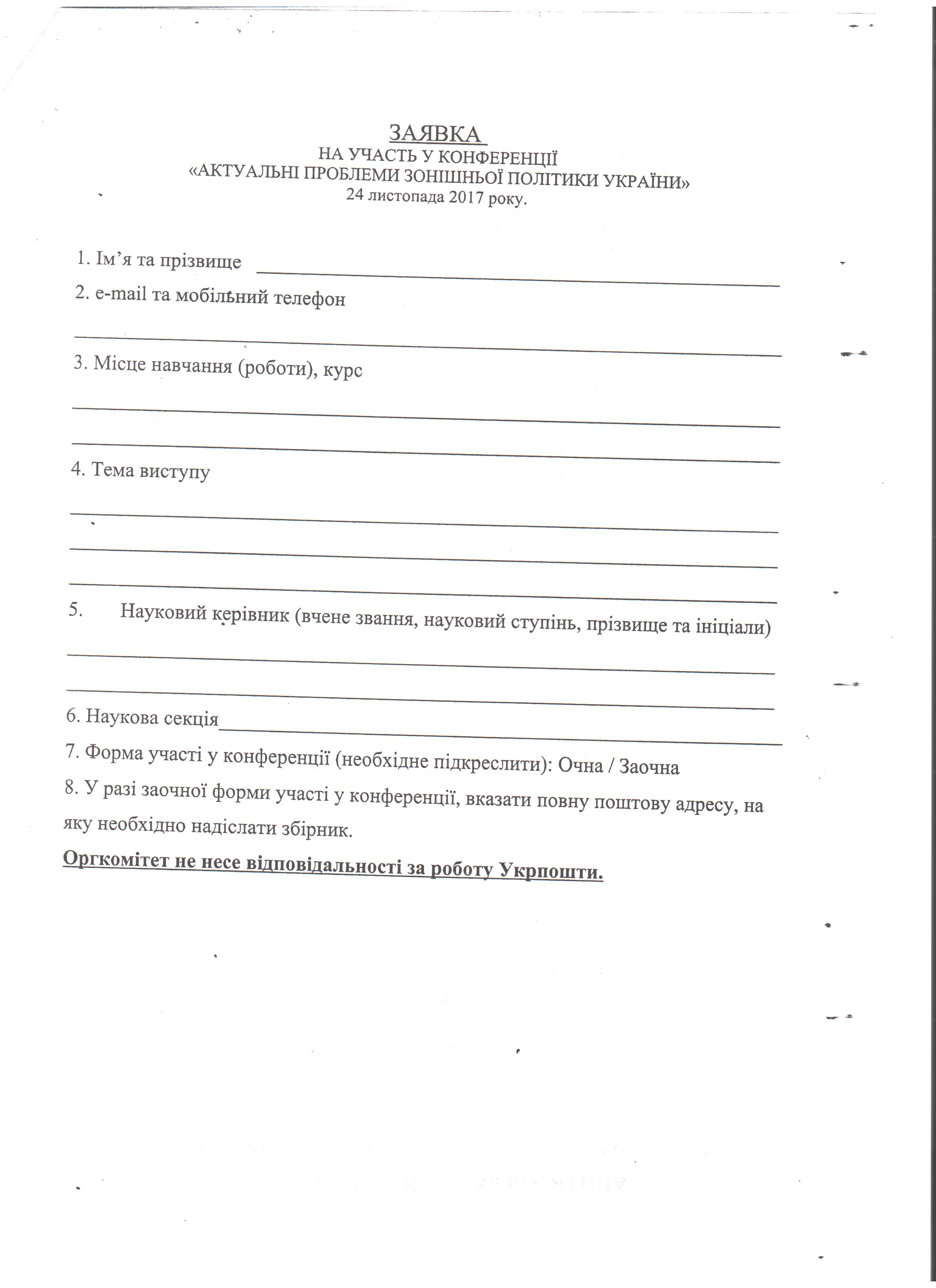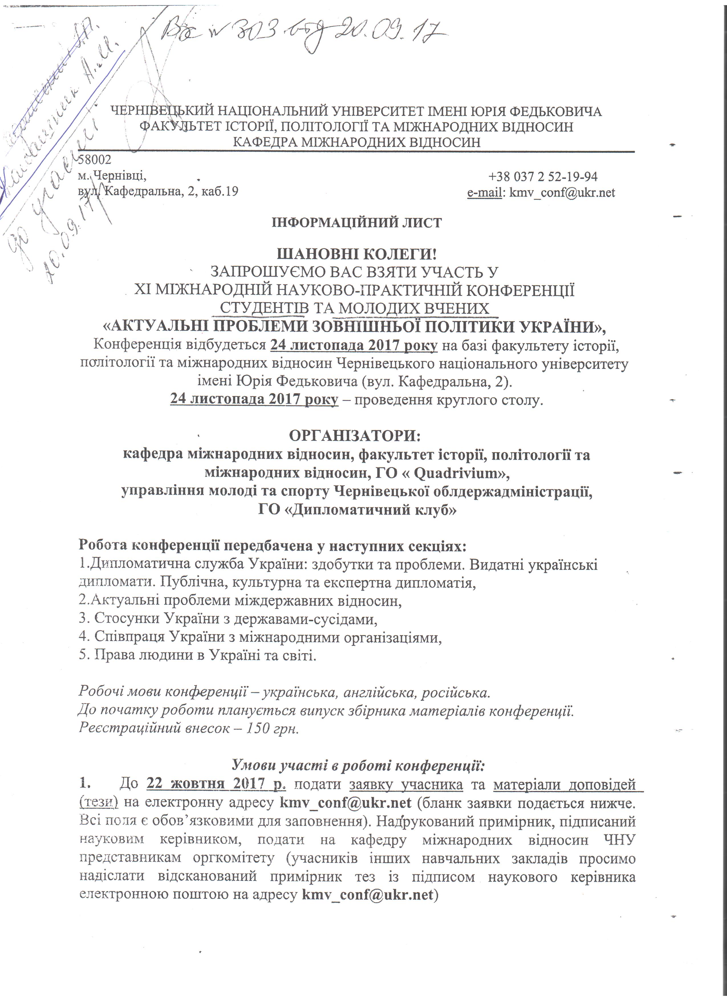 На підставі викладеного, просимо керівників структурних підрозділів Університету провести анкетування серед молодих вчених в своїх структурних підрозділах, а заповнені анкети подати для узагальнення та обробки голові Ради молодих вчених до 01.10.2017 року.