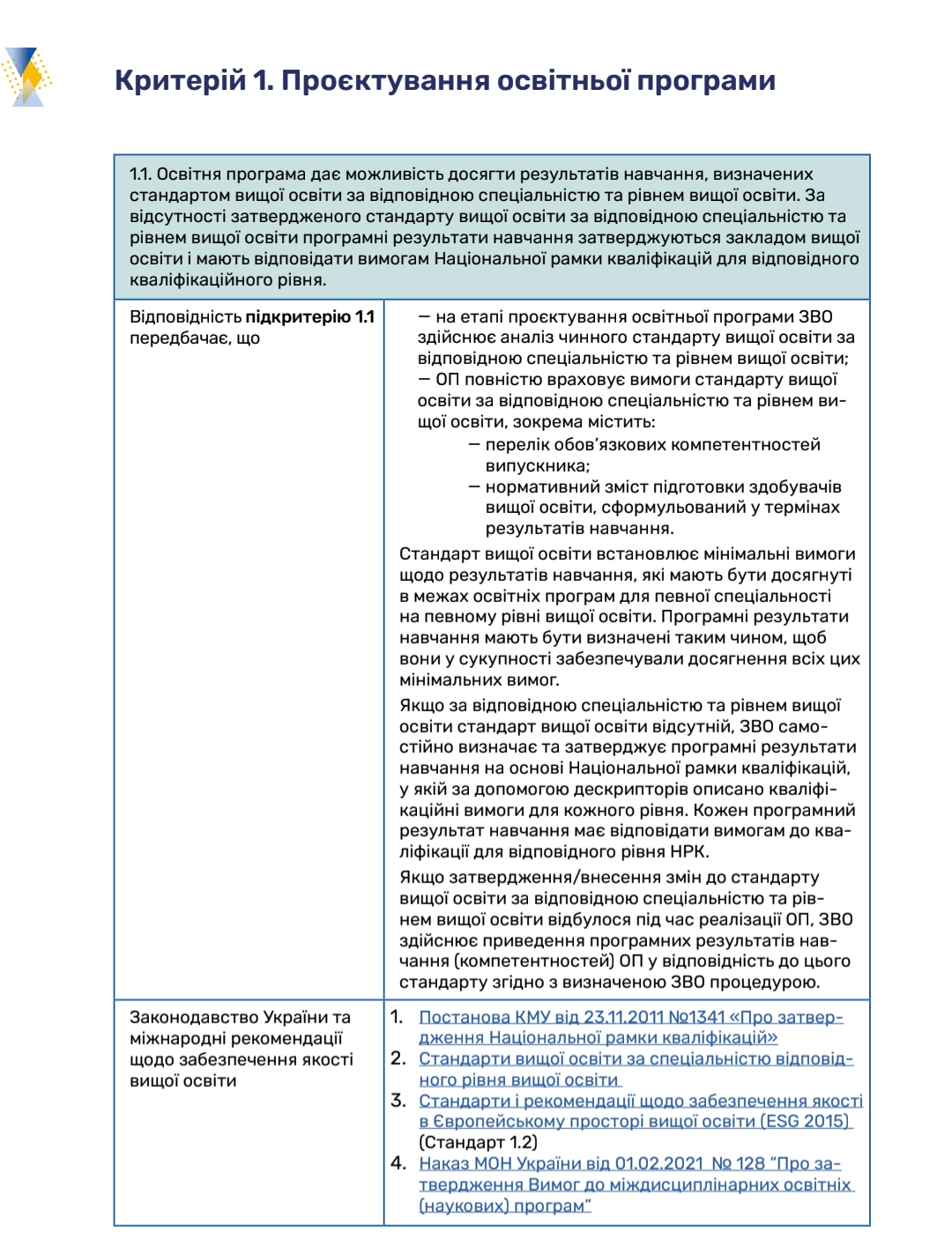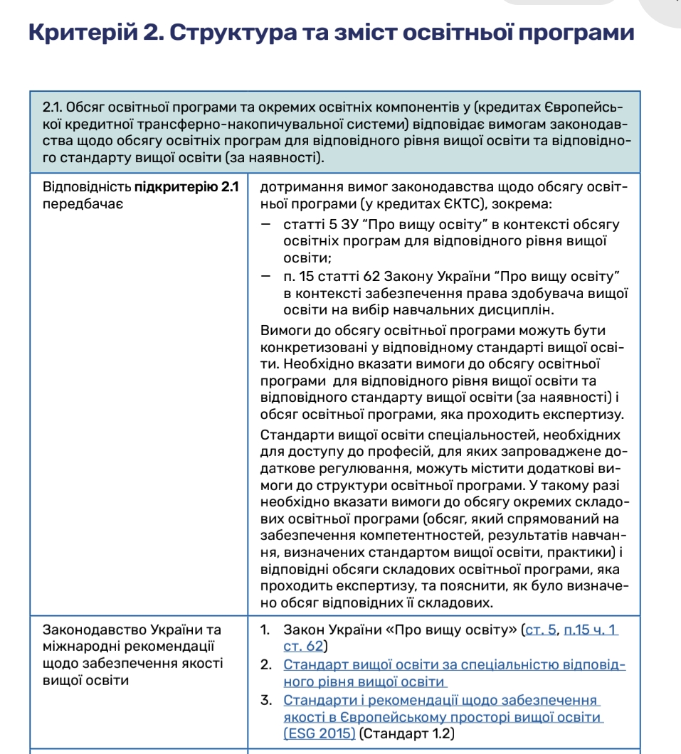 Роз’яснення щодо застосування критеріїв оцінювання якості освітньої програми