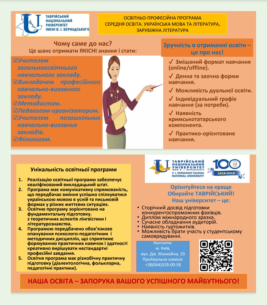ОПП «Філологія. Українська мова та література, польська мова» другого (магістерського) рівня освіти, гарантом якої виступила Богдана Гочаренко, буде цікава тим студентам, хто в закладах вищої освіти на першому бакалаврському здобув професію, несуміжну з філологією, але в переліку освітніх компонентів другою мовою для вивчення мав саме польську. Такі абітурієнти вступають до магістратури за означеною програмою, маючи достатній рівень володіння мовою. Для них відкривається можливість працевлаштування у структурах, де потрібні знавці польської мови. Також здобувачі цієї ОПП залучаються до наукових досліджень в галузі лінгвістики та літератури. Потенційні роботодавці, зацікавлені та причетні мають можливість запропонувати таким студентам в подальшому роботу у видавництвах, дипломатичних структурах, громадських організаціях та об’єднаннях, які потребують фахівців з польської філології.