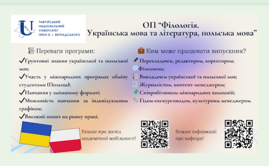 «Філологія. Українська мова та література, польська мова»