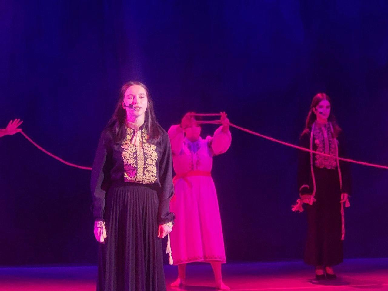 The concert continued with a creative performance by the Incunabula Theater. Its goal was to convey the pain of Ukrainians, who have suffered for centuries from the deprivation of freedom and independence, for which they have fought their entire lives. The main characters are Ukrainian women of different generations, while the backdrop symbolizes the deprivation of freedom in the context of life. The girls “cried out” that they wanted freedom, but it all ended with them being sent to the other end of the stage. For myself, I drew a story in which Ukrainians expressed their thoughts, words, and desire for independence, for which they paid the price in the end, because this is the fate of the Ukrainian people, which we have been striving to “break” for many years.